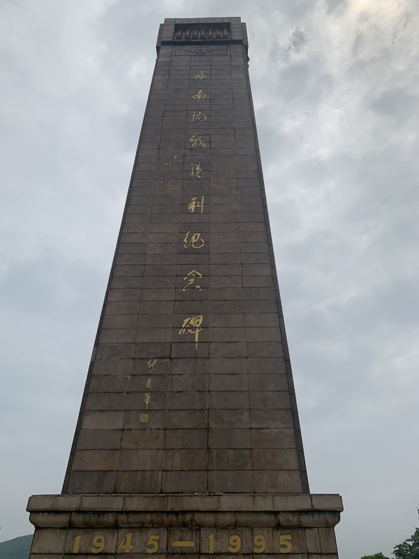 张爱萍将军题写碑名的苏南抗战胜利纪念碑由镇江市31.3万共产党员捐资所建,宽6米,高36米,碑身高28米,须弥高3.13米,碑前有317级16米宽的台阶。大家拾阶而上,瞻仰纪念碑,诵读碑文、聆听讲解,深切缅怀为国壮烈捐躯的7000英烈。