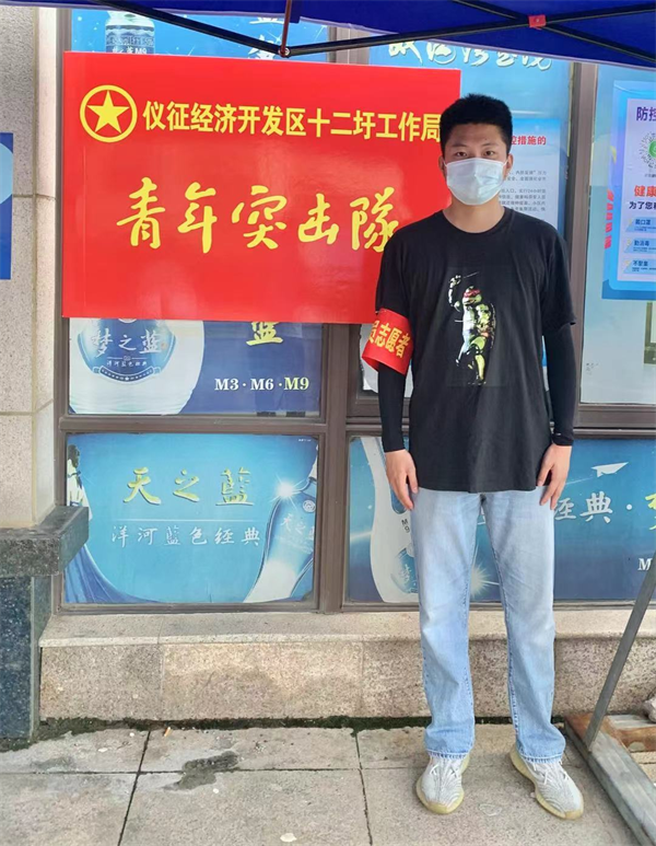 殷杰是集团的90后员工,出生于1998年的他同时也是一名共产党员。疫情发生后,他响应公司号召,主动要求加入志愿服务队。8月10日,来到翡翠湾社区后,便与社区工作人员配合共同完成小区日常管理工作。每天早上七点开始在小区出入口进行体温测量以及两码的检查。顶着炎炎烈日,冒着高温酷暑,对从风险地区返回的户主进行摸排,确保其居家隔离并及时联系社区定时上门进行核酸采样。